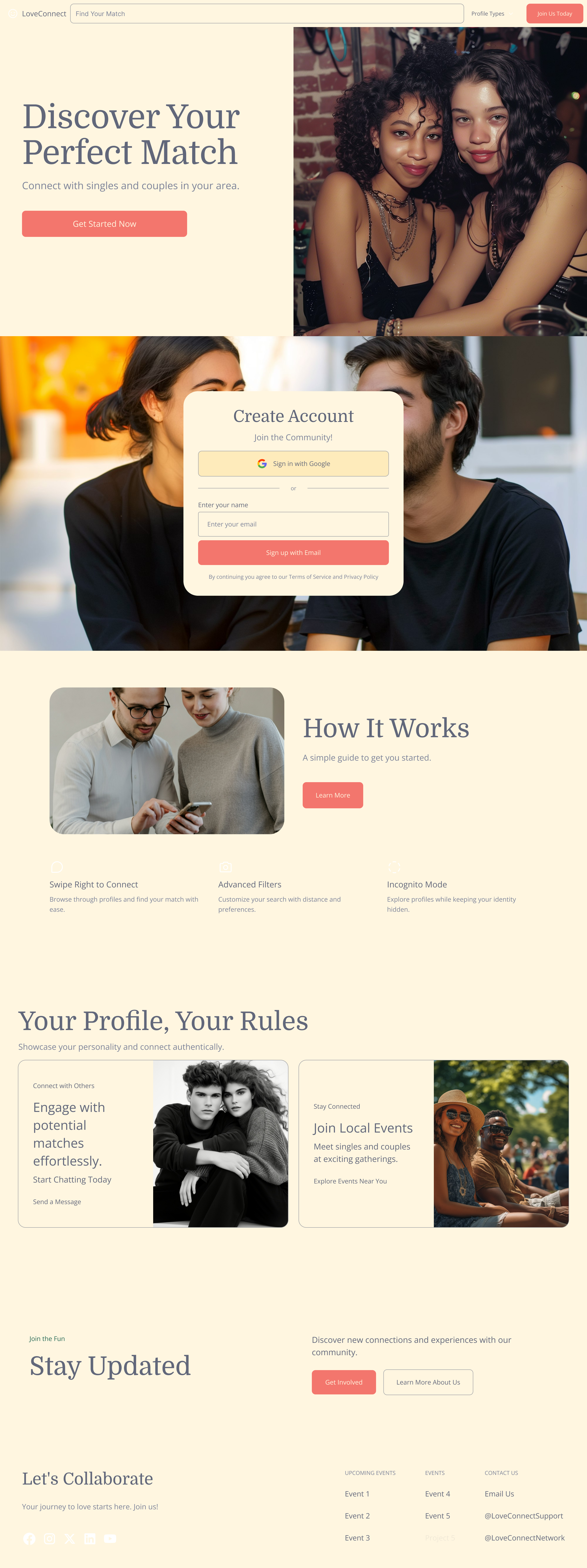 Dating and social connection platform website